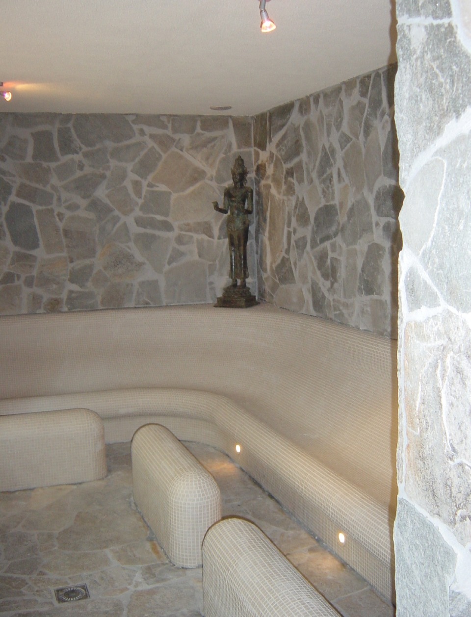 - Optie bekleding zittingen: natuursteen of mozaïektegels